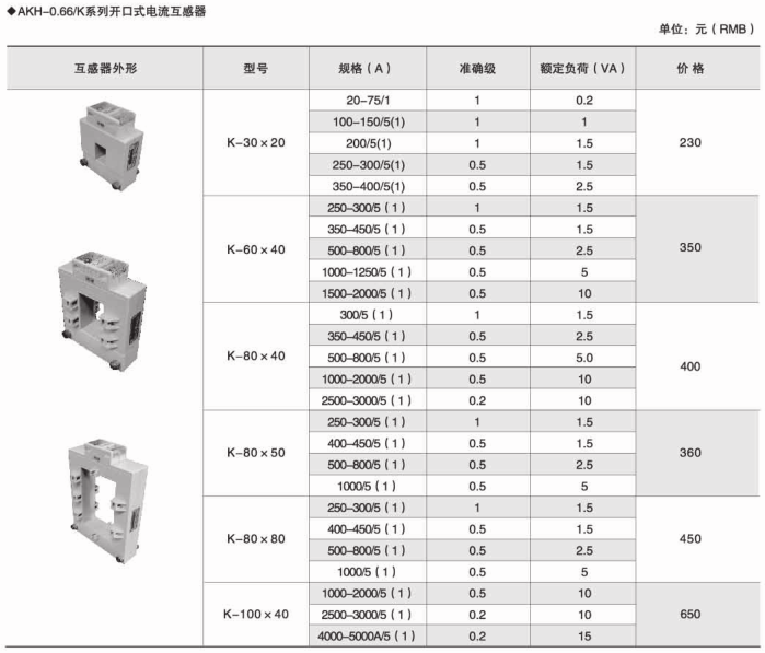 具體型號(hào):AKH-0.66/K K-80*50 800AKH-0.66/K開(kāi)口式電流互感器