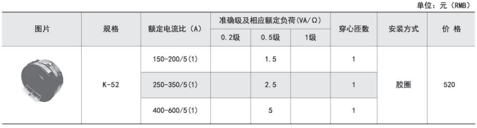 | AMZK52 | 150-200/5(1)A | 1.5 | Ф52 | 膠圈 | ||