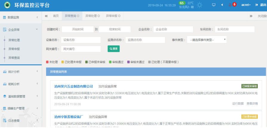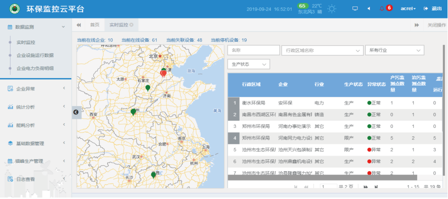 全面推進打贏藍天保衛(wèi)戰(zhàn),打好碧水保衛(wèi)戰(zhàn),打勝凈土保衛(wèi)戰(zhàn),加快生態(tài)環(huán)境保護、建設美麗中國。環(huán)保用電監(jiān)管系統(tǒng)針對企業(yè)內的環(huán)保設施、設備運行狀況進行檢測,發(fā)揮環(huán)保設備的作用,提高監(jiān)察效率,并能夠動態(tài)掌握治污治理執(zhí)行情況和異常預警提供支持,安科瑞憑借監(jiān)控領域里多年的技術力量和豐富經(jīng)驗,創(chuàng)新研發(fā)了AcrelCloud-3000環(huán)保設施用電監(jiān)管云平臺,依托快速發(fā)展的物聯(lián)網(wǎng)技術、電力參數(shù)傳感技術,實時采集企業(yè)總用電、工藝生產(chǎn)設備用電、污染治理設施設備用電等數(shù)據(jù),通過設施運行停車分析、越限分析、停/限產(chǎn)分析、工藝關聯(lián)分析等,及時發(fā)現(xiàn)環(huán)保治理設施、設備等未開啟、空轉、減速、降頻以及異常關閉等未正常工作的情況;同時,通過數(shù)據(jù)分析,還可以實時監(jiān)控限產(chǎn)和停產(chǎn)整治企業(yè)運行狀態(tài)。應用范圍: